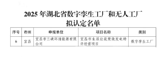 本網訊(張天宇)近日,湖北省經濟和信息化廳正式公布了2025年湖北省數字孿生工廠和無人工廠認定名單,宜昌垃圾發電項目脫穎而出,被認定為“湖北省數字孿生工廠”,這一榮譽不僅是對項目自身數字化建設的肯定,更是公司踐行“雙碳”目標、助力湖北省制造業高端化、智能化、綠色化發展的又一重要成果。