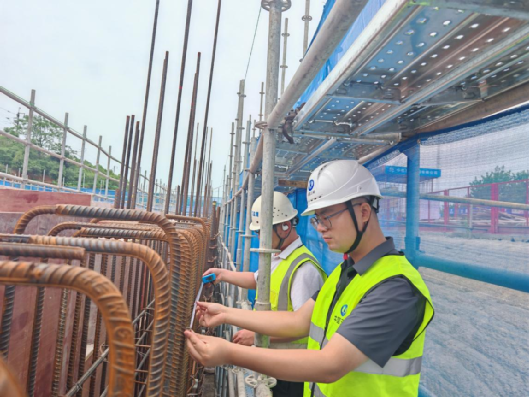 “鋼筋綁扎間距超標2毫米,立即返工”,梁子湖項目青年員工李麟在項目現場,卡尺緊貼鋼筋節點,斬釘截鐵地說。作為建設期的“質量守門人”,他每日攜帶“三件寶”——激光測距儀、混凝土強度檢測儀、隱患排查記錄本,穿梭在梁子湖水廠施工現場。五一期間,他帶領小組完成作業面1000余個鋼筋節點的測量,發現并整改12處偏差。“每一根鋼筋都是工程的‘脊梁’,必須挺直”,李麟說道。